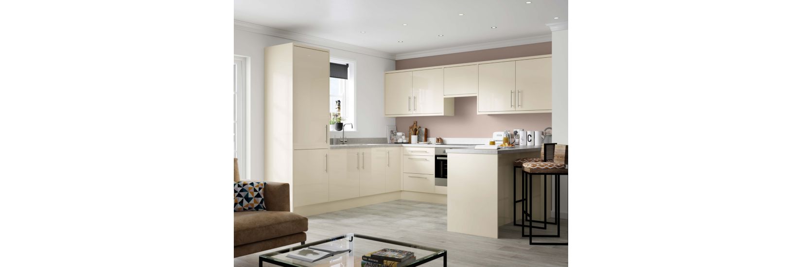 J pull kitchen in cream gloss £1,736 * or only £21.24 * per month. For all these vogue flat pack units. J pull kitchen in pebble & white gloss £1,450 * or only £17.74 * per month. 1 * 715mm x 296mm. Shaker kitchen in fossil grey £1,228 * or only £15.03 * per month.